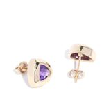 Glimmers of twilight entwine with the captivating hues of the Demona rubover amethyst studs. Set in radiant 9 carat yellow gold, these earrings dance with light, reflecting the wearer’s inner strength and elegance. Embrace a piece that tells your story, exuding confidence and grace, where each facet becomes a vibrant echo of your spirit.