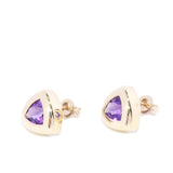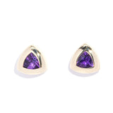 The trilliant cut bright deep purple amethysts measure approximately 6.0 millimetres.