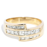 The seventeen baguette diamonds are estimated to weigh 1.30 carats, are F colour and P1 clarity grades.