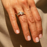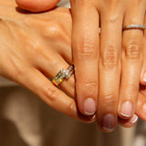 The Zephyr Ring, exquisitely crafted in 14-carat yellow gold, embodies the essence of Spring. Each diamond sparkles like a beacon of light, collectively creating a radiant symphony that celebrates the seasonal transformation.