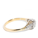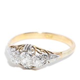 On a bridge of ribboning 18 carat gold embellished with sparkling diamonds, our Pennie Ring is as though lace was spun with gold. The sweetest of vintage treasures.