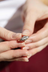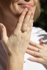 The Pennie Ring belongs to our treasure trove of strongly sustainable, ethical, environmentally friendly, and conflict-free jewellery. She lives in our carefully curated collection of one of a kind vintage jewellery pieces. A vintage piece of jewellery has many stories to tell. Tales of romance, love, family, happiness and sometimes loss and endurance. Handed down from person to person, generation to generation. The Pennie Ring is a piece of wonderful history.