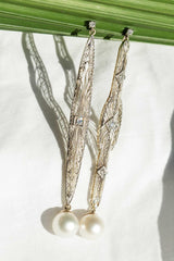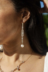 Talulah Re-invented 1900s Diamond & Pearl Earrings 14ct & Platinum