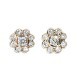 The pair of 4 claw set round brilliant cut diamonds are estimated to weigh 0.66 carats, are I colour and SI1 to SI2 clarity grades. The sixteen round brilliant cut diamonds in the flower attachments are estimated to weigh 1.12 carats, are G to H colour and SI to P1 clarity grades.