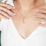 Intertwined in a perfect embrace, a duo of 18 carat white gold bars, one set with shimmering diamonds, a captivating symbol of eternal love. The Eliana Pendant & Chain is a jewel destined to rest close to a heart pulsing with love.