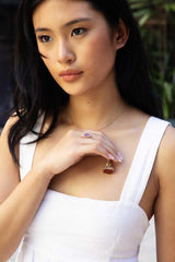 The Danarys Pendant & Chain belongs to our treasure trove of strongly sustainable, ethical, environmentally friendly, and conflict-free jewellery. She lives in our carefully curated collection of one of a kind vintage jewellery pieces. A vintage piece of jewellery has many stories to tell. Tales of romance, love, family, happiness and sometimes loss and endurance. Handed down from person to person, generation to generation. The Danarys Pendant & Chain is a piece of wonderful history.