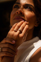 The Shai Ring belongs to our treasure trove of strongly sustainable, ethical, environmentally friendly, and conflict-free jewellery. She lives in our carefully curated collection of one of a kind vintage jewellery pieces. A vintage piece of jewellery has many stories to tell. Tales of romance, love, family, happiness and sometimes loss and endurance. Handed down from person to person, generation to generation. The Shai Ring is a piece of wonderful history.