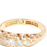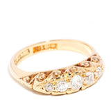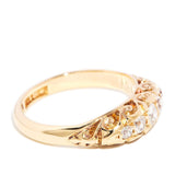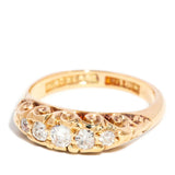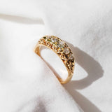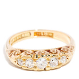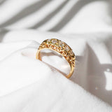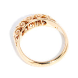 An early Australian vintage beauty, the Shai Ring is set with a graceful row of old-cut diamonds crafted in 18 carat yellow gold, each shimmering with unique character and timeless brilliance. Her intricate gold setting, featuring delicate filigree patterns, add layers of history.