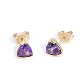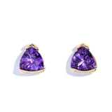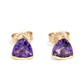 The two bright vivid purple trilliant cut amethysts measure approximately 6.0 millimetres.
