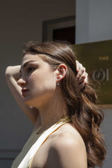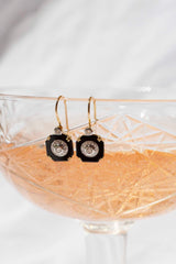 The Elspeth Earrings are a nod to the Golden Age of cinema, structured lines reminiscent of a time when cinema, architecture and fashion created a style that is still much sought after today. She is made with jet black onyx embellished with sparkling diamonds, staged to invite the spotlights gaze.