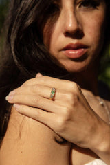 The Jamie Ring belongs to our treasure trove of strongly sustainable, ethical, environmentally friendly, and conflict-free jewellery. She lives in our carefully curated collection of one of a kind vintage jewellery pieces. A vintage piece of jewellery has many stories to tell. Tales of romance, love, family, happiness and sometimes loss and endurance. Handed down from person to person, generation to generation. The Jamie Ring is a piece of wonderful history.