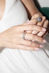 Vintage jewels have many stories to tell - of romance, love, family, joy, and sometimes loss and resilience. Passed down from person to person, generation to generation, they carry the whispers of past promises and sentiment. The Eunice Band is not just a piece of jewellery; it is a piece of wonderful history waiting to continue its journey.