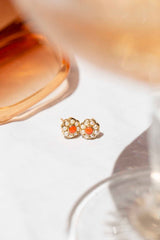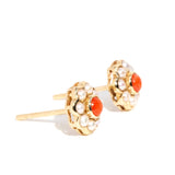 Ferne Coral & Pearl Cluster Earrings 9 Carat Gold