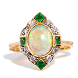 Gene Opal Emerald & Diamond Ring 14ct Gold