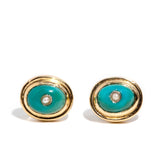 The oval turquoise cabochons measure approximately 7.7x5.9 millimetres. The white seed pearls measure 1.7 millimetres.