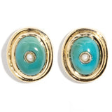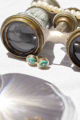 The Gina Earrings are a subtle blend of creamy turquoise and seed pearls framed in ribbons of gold. Worn when the curtain falls and the madding crowd of the theatre has scattered into the night, she is for you and yours.