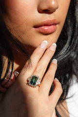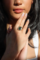 The Viridi Ring belongs to our treasure trove of strongly sustainable, ethical, environmentally friendly, and conflict-free jewellery. She lives in our carefully curated collection of one-of-a-kind vintage jewellery pieces. A vintage piece of jewellery has many stories to tell. Tales of romance, love, family, happiness and sometimes loss and endurance. Handed down from person to person, generation to generation. The Viridi Ring is a piece of wonderful history.