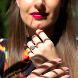 The Philamina Ring can be resized prior to shipping upon request. Resizing is complementary up or down three sizes or please message us for a quote if more sizes are needed.