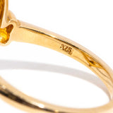 The 9 carat yellow gold Isabella Ring ribbons gold, curling around her vivid green emerald, an ornate homage to a rich past. She is very much the star in this operatic extravaganza. Her final act of flamboyance is in her enamelled frame of shining black, white, green and red.