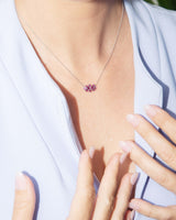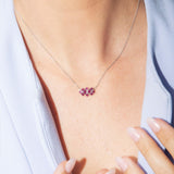 Our sweet Kerry Necklace, where rubies, like fiery blossoms, dance upon a delicate chain of 9 carat white gold. Each ruby, a tribute to nature's beauty and love's passion and romance. She is exquisite, a symbol of love and desire and a timeless jewel that will captivate hearts forever.