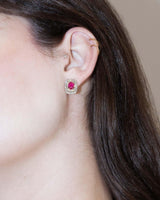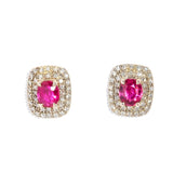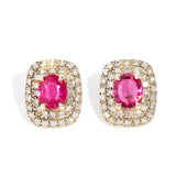 Our Lissandra Earrings frame oval-shaped, deep pink tourmalines, like molten jewels, embraced in a halo of sparkling diamonds. Beautifully crafted in 9 carat gold these elegant earrings, a symphony of color and light, exude passion and sophistication.
