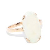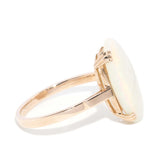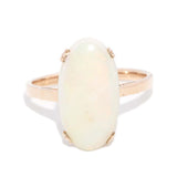 Radiating ethereal beauty, this exquisite 1970s Australian opal ring captures the essence of the era. Set in lustrous 9ct gold, the 3.4ct opal shimmers with an enchanting dance of colours, evoking the fleeting moments of a sunset. A timeless treasure, it whispers stories of love and artistry, perfect for the modern soul longing for connection.