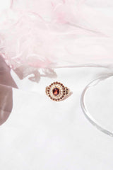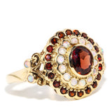 Glamorous like her namesake, the 9 carat gold Marilyn Ring is a glorious memory stolen from Hollywood's rich and vibrant past. Her rows of burnished garnets and blue green opals set in rich gold imagine a jewel worn to be exalted by royalty and the hoi polloi alike.
