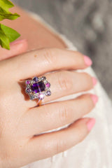 Jasmina Emerald Cut Amethyst Sapphire & Diamond Ring 18ct Gold