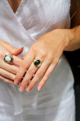 The Logan Ring is part of our trove of strongly sustainable, environmentally friendly, and conflict-free jewellery. She lives in our carefully curated collection of one-of-a-kind vintage treasures - polished and restored with care by our talented jewellers, restoring them to their former glory.