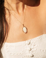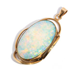 A romantic dream, where an Australian opal, like a rainbow captured in stone, shimmers in a ribboning embrace of 9 carat gold. Our enchanting Ozias Pendant, with her play of color and light, is a reminder of the beauty that comes from the dirt and dust of the Outback.