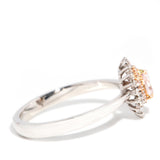 Lovingly forged in gleaming 18 carat white gold, this gorgeous contemporary ring features a delightful pear-shaped pink diamond in an elegant rose gold milgrain claw setting. A partial border of shimmering round brilliant cut diamonds and an irresistible outer border of round brilliant and baguette cut diamonds add the finishing touch to The Camilla Ring. She is an enchanting ring destined to be the perfect engagement ring for a bride as unique as she is.