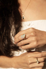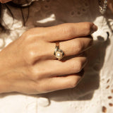 The Xanthe Ring belongs to our treasure trove of strongly sustainable, ethical, environmentally friendly, and conflict-free jewellery. She lives in our carefully curated collection of one-of-a-kind vintage jewellery pieces. A vintage piece of jewellery has many stories to tell. Tales of romance, love, family, happiness and sometimes loss and endurance. Handed down from person to person, generation to generation. The Xanthe Ring is a piece of wonderful history
