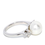 The near round South Sea pearl is a silvery white colour and measures 9.30 millimetres and has bright lustre. The six marquise diamonds are estimated to weigh 0.12 carats, are G colour and SI clarity grades.