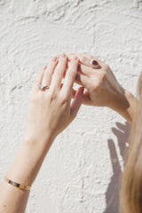 The Hilton Ring is part of our trove of strongly sustainable, environmentally friendly, and conflict-free jewellery. She lives in our carefully curated collection of one-of-a-kind vintage treasures - polished and restored with care by our talented jewellers, restoring them to their former glory.