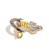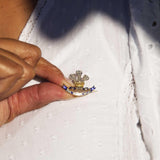 Faithfully crafted in 18 carat gold, The Edward Pin symbolises service for a greater good. Her royal blue enamelled banners flow beneath a bejewelled crown and diamond embellished feathers - she is faith, she is hope, and she is charity.