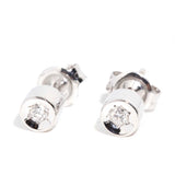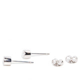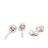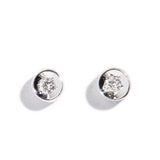 Forged in 18 carat white gold, this lovely pair of reinvented vintage 1990s stud earrings each hold a gorgeous white gold rubover set round brilliant cut diamond with a butterfly post back. We named these petite studs The Petra Studs. They fit comfortably to the ears and are perfect worn alone or layered with other treasured gems and jewels.