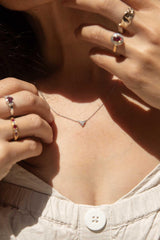 The Alessandra Necklet belongs to our treasure trove of strongly sustainable, ethical, environmentally friendly, and conflict-free jewellery. She lives in our carefully curated collection of one of a kind vintage jewellery pieces. A vintage piece of jewellery has many stories to tell. Tales of romance, love, family, happiness and sometimes loss and endurance. Handed down from person to person, generation to generation. The Alessandra Necklet is a piece of wonderful history.