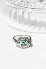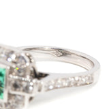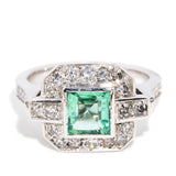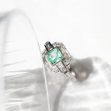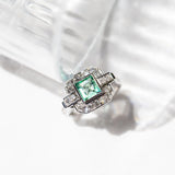 Florence Reinvented Antique Bright Emerald & Diamond Platinum Ring