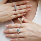 The Florence Ring belongs to our Freedom Collection. Each piece in the Freedom Collection is slow fashion at its finest. Uniquely designed and crafted with at least 90% reclaimed gems, diamonds, gold & platinum. Diamonds, gemstones and precious metals can last many lifetimes, an eternity in fact, unlike some jewellery designs. The freedom collection is ethical fashion, handcrafted from previously loved jewellery. Know that your stunning jewellery makes the lightest of footprints on our earth.