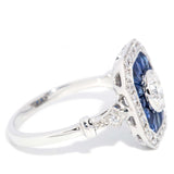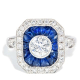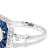 Peregian Sapphire & 1.14ct Diamond Art Deco Inspired Ring 18ct White Gold