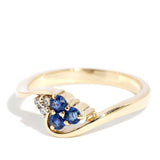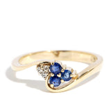 Our Pepper Ring is a sweet cluster of shimmering sapphires and diamonds in a band of ribboning 9 carat gold. A lovely family keepsake for years to come.