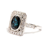 Apollo 3.97ct Sapphire & Diamond Art Deco Style Platinum Ring