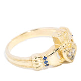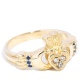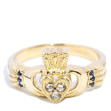 Selah Diamond Sapphire Hand Engraved Claddagh Ring 10ct Gold