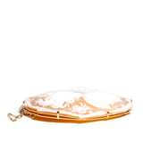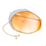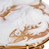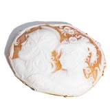 The white shell cameo is over an orangish-brown background and measures approximately 75x58 millimetres.