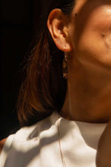 Meet Averi, our cascading smoky quartz drop earrings in 9 carat gold. Each marquise-cut gem glows in a shimmering bronze hue, framed delicately in gold to enhance their ethereal allure. These earrings whisper mystery and enchantment, a perfect accessory for the woman who loves the beauty of the unknown.