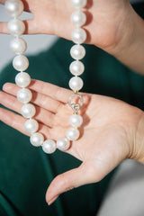 Thoughtfully strung together, this gorgeous strand of round white South Sea pearls is named Helmi. Perfect for everyday wear, she is finished with a lovely diamond set clasp that perfectly compliments the pearls.