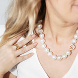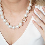 Helmi 1990s Round South Sea Pearl Necklace Diamond Clasp 9ct