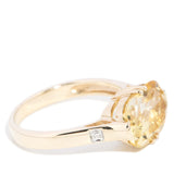 The cushion shaped citrine measures 11.00x8.00 millimetres and is a bright light yellow. The two round brilliant cut diamonds are estimated to weigh 0.02 carats.