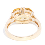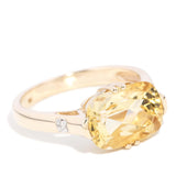Bathed in the warm glow of a cushion-cut citrine, this radiant ring transforms every glance into a sunlit embrace. Crafted in lustrous 10 carat yellow gold, her artistry captures the intricate dance of light, igniting joy and warmth in the wearer. An emblem of positivity, she is a reminder that beauty thrives in the heart of nature's gems.