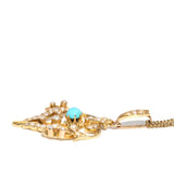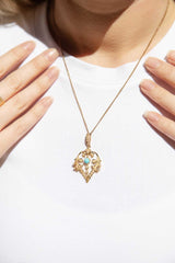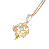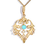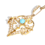 Elwyn Antique Turquoise & Pearl 15ct Gold Pendant & 9ct Chain